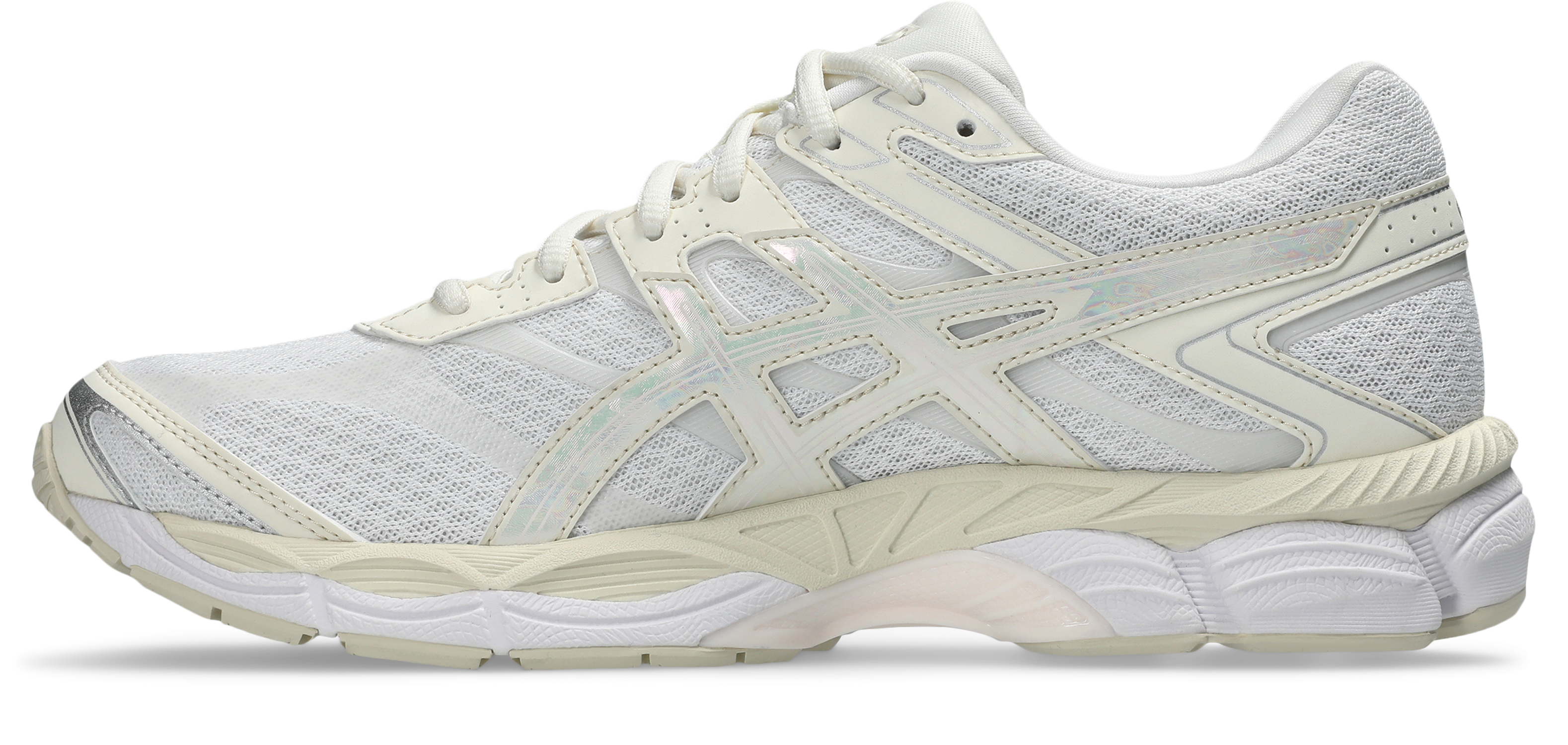 Saya yapısı; parlak sentetik deri katmanlar, yarı şeffaf TPU kısımlar ve açık file alt katmanları bir araya getiriyor. Ayrıca, ışıltılı ASICS Çizgileri ve sedef efektli katmanlar tasarıma şık bir dokunuş katıyor.