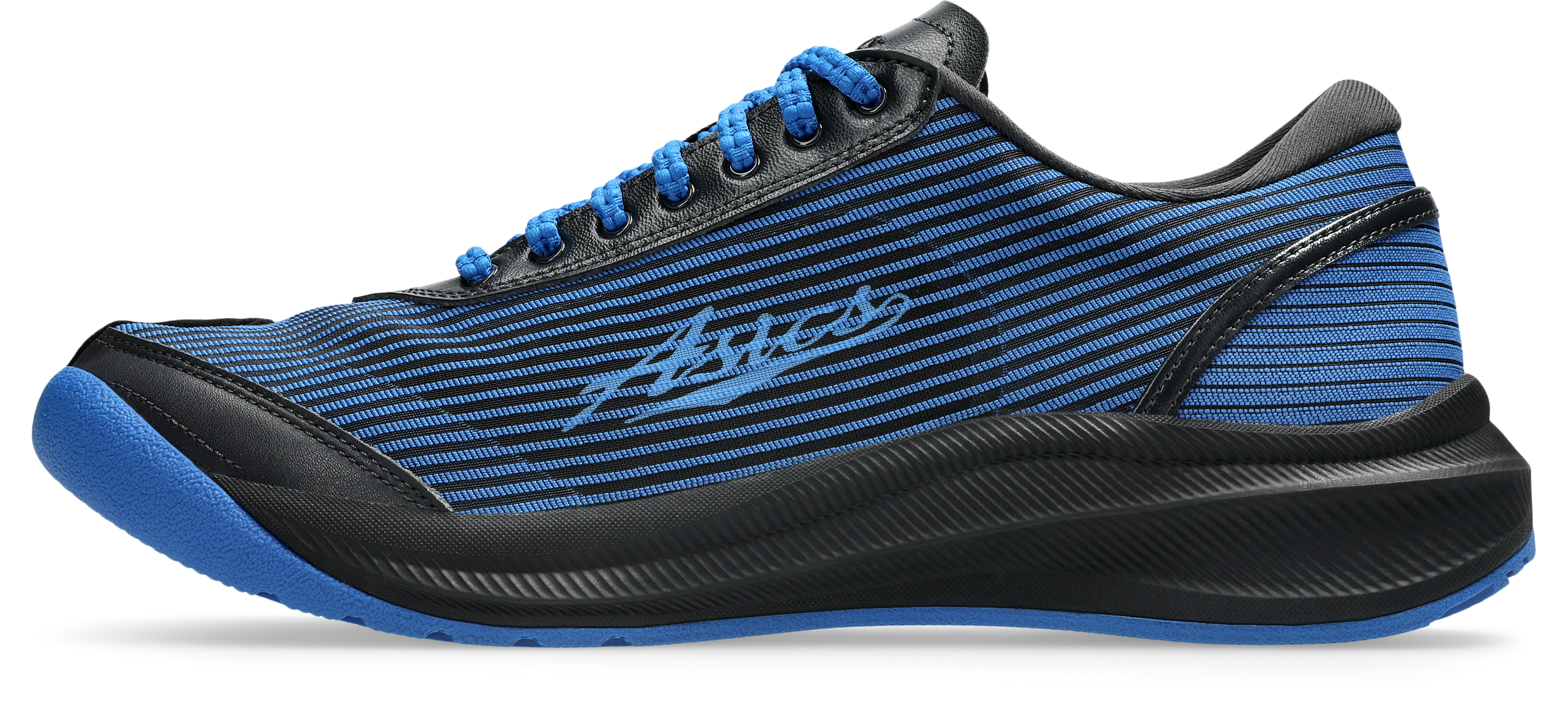 Markamızın 1950'lerden mirası olan koşu ayakkabılarına benzer şekilde, ayakkabının yanlarında işlemeli bir ASICS logosu kullanıldı.