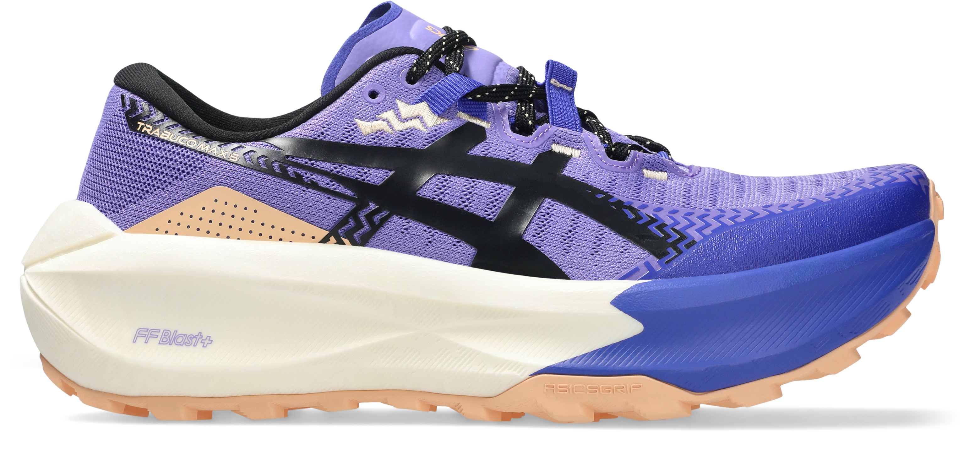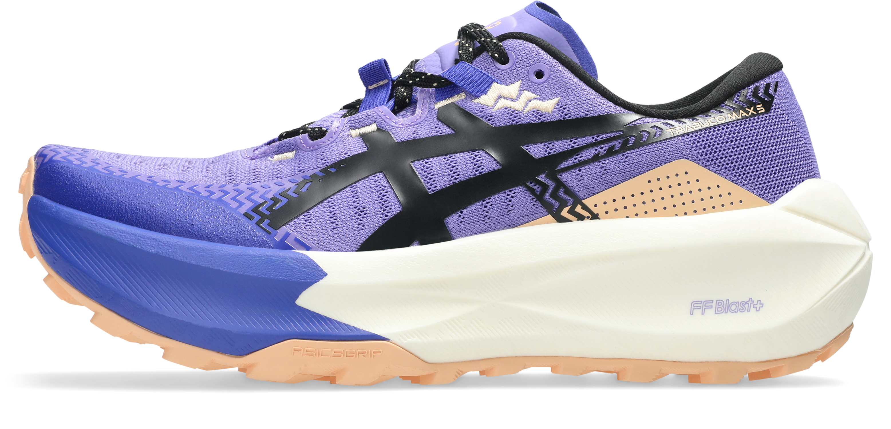 TRABUCO MAX™ 5, sunduğu üst düzey zemin tutuşu ve konforla arazi koşullarında güvenle ilerlemenizi sağlar. Dış tabana yerleştirilen ASICSGRIP™ teknolojisi, arazi yüzeylerinde daha iyi çekiş gücü sunar. Orta tabandaki FF BLAST™ PLUS teknolojisi, bulutların üzerinde yürüme hissi veren yastıklamasıyla her adımda yaylanma etkisi yaratır. Önceki modeline göre yaklaşık 13 gram daha hafiftir. Su tutmaz file yapısı, su emilimini azaltarak ıslak koşullarda konforlu kalmanızı sağlar.